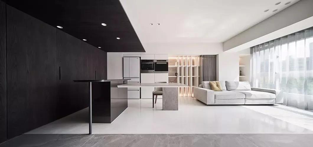 除此之外,沙發(fā)本身也是不錯的隔斷工具,常見在客餐廳區(qū)域▼