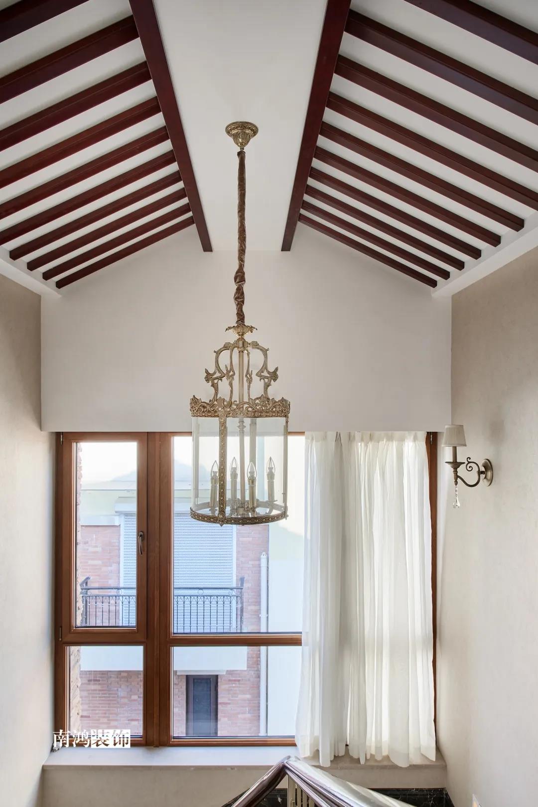 裝飾的風格是人文品位生活的體現 設計師根據業主的生活需求 將浪漫、現代與古典相融合 淬煉其中輕奢的美 讓空間內的每一個物件 都能尋到自己的歸身之所 01. 戶型分析 TYPE ANALYSIS ①原有的內庭院空間改造成了連通四層的樓梯間,南面入戶樓梯朝向改動,避免了直對大門的風水大忌。樓梯間的換位調整讓二樓、三樓的各個臥室空間都能規劃成帶有衛生間的獨立套間,大大滿足了生活中的使用需求和私密性。 ②地下室做了擴建,設計了超大衛生間,增設雙臺盆,淋浴房,桑拿房,浴缸等功能,還設計了酒窖及洗衣房,滿足生活需求的多樣性。 ③調整中廚和客衛的位置,增設西廚區和吧臺區,這樣既擴大了餐廳的就餐空間,也讓西廚和餐廳有了更好的互動性。 02. 客廳 LIVING ROOM 一樓保留并微調了原有與二樓的共享空間 保證了整個會客區的區域高度 讓空間感有了更大的呈現 客廳呈雙軸線對稱 挑高中空層彰顯華貴氣勢 空間穩重而富有層次感 自帶貴族氣質的英式家具 具有強烈和鮮明的歷史感 經典的皇家紅色分外搶眼,張揚而熱烈 整面大理石背景 搭配深色實木護墻 與橄欖綠的條紋壁紙 和金色落地窗簾交相呼應 壁爐內還暗藏空調內機 奧古曼木皮的火焰紋理 演繹著經典傳奇的浪漫色彩 在多種材質與色彩的混搭下 設計開啟生活多元的空間體驗 03. 餐廚空間 KITCHEN | DININGROOM 餐廳的風格足夠穩重 空間開敞朗闊 一桌的豐盛佳肴,推杯換盞之間 展示的是家庭歡聚的熱鬧與喜悅 超大的戶型面積 讓西廚也有了寬敞的容身之處 深色實木櫥柜 與全屋的尊貴氣質相輔相成 04. 樓梯間 STAIRCASE 樓梯間經過調整后貫連上下四層 頂部斜面以木格柵裝飾 傳遞細膩而別致的空間表達 05. 臥室 BEDROOM 通過壁紙、窗簾與床品的和諧搭配 臥室塑造了不同個性、情感的表達 讓空間變得溫暖而舒適 三樓主臥空間則更顯獨特 木飾面的梯形頂、香檳色的硬包背景 搭配經典條紋格墻紙和棗紅色窗簾 整體內斂含蓄,頗具淡淡的君子之風 06. 書房 STUDY ROOM 書房選用清新的綠色壁紙 與溫潤的木質家具搭配 豐富的自然感氣息 宛若置身鄉村田園一般 07. 衛生間 BATHROOM 衛生間整體鋪淺色的墻地磚 雕花細節使空間不失精致華美 輕奢感之上更多一份靜謐的典雅 提供獨一無二的衛浴時光 -- ·項目信息· 項目名稱:陽明谷 建筑類型:聯排別墅